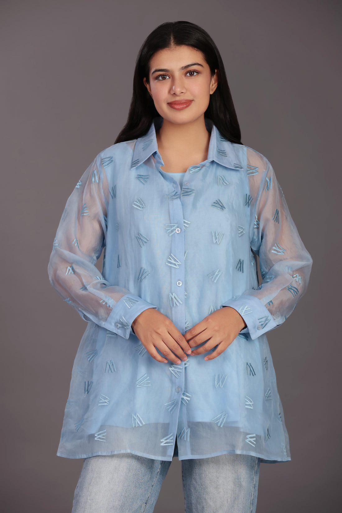 White Classic Co-ord Set fabric organza machine embroidery we can wear in summers in high...