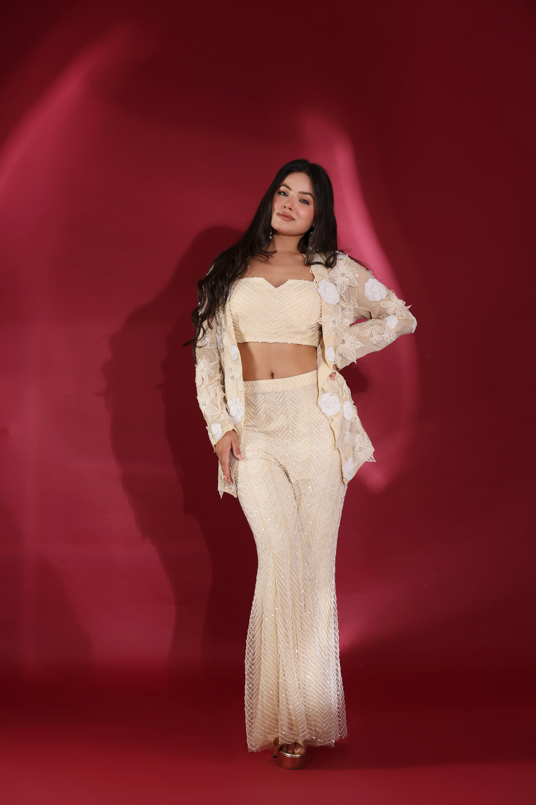 - Jacket: The jacket is made from net fabric and features 3D embroidered flowers, adding...
