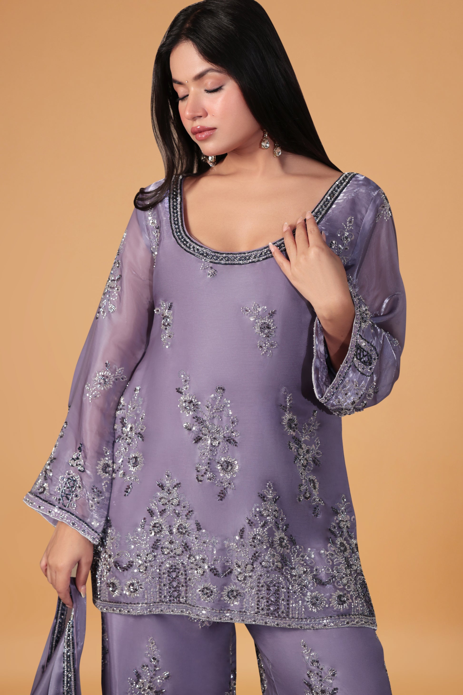 PURPAL KURTI PLAZO/SHRARA DUPTTA SET
