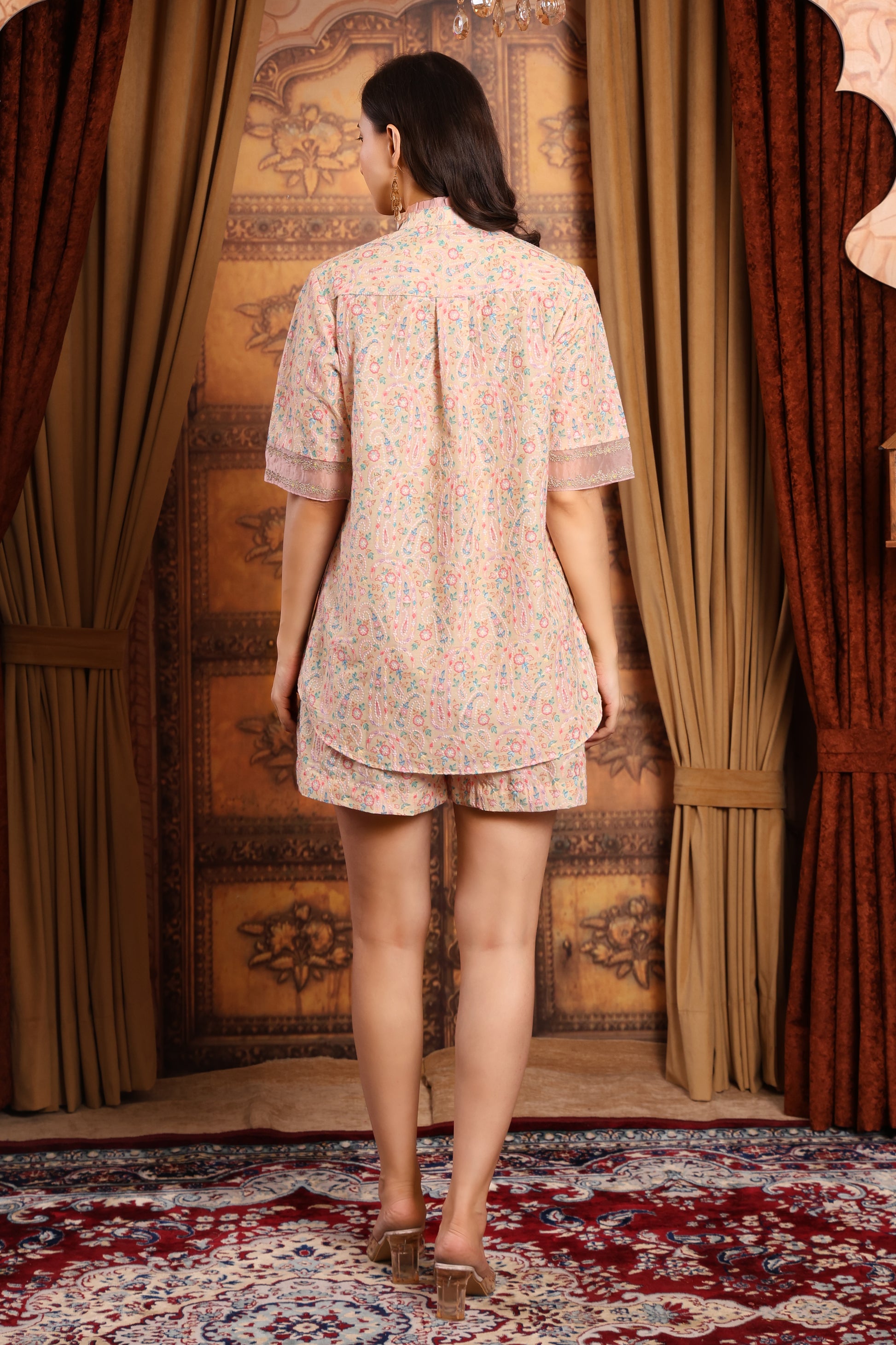 Zari Embroidered Co-ord set with shorts